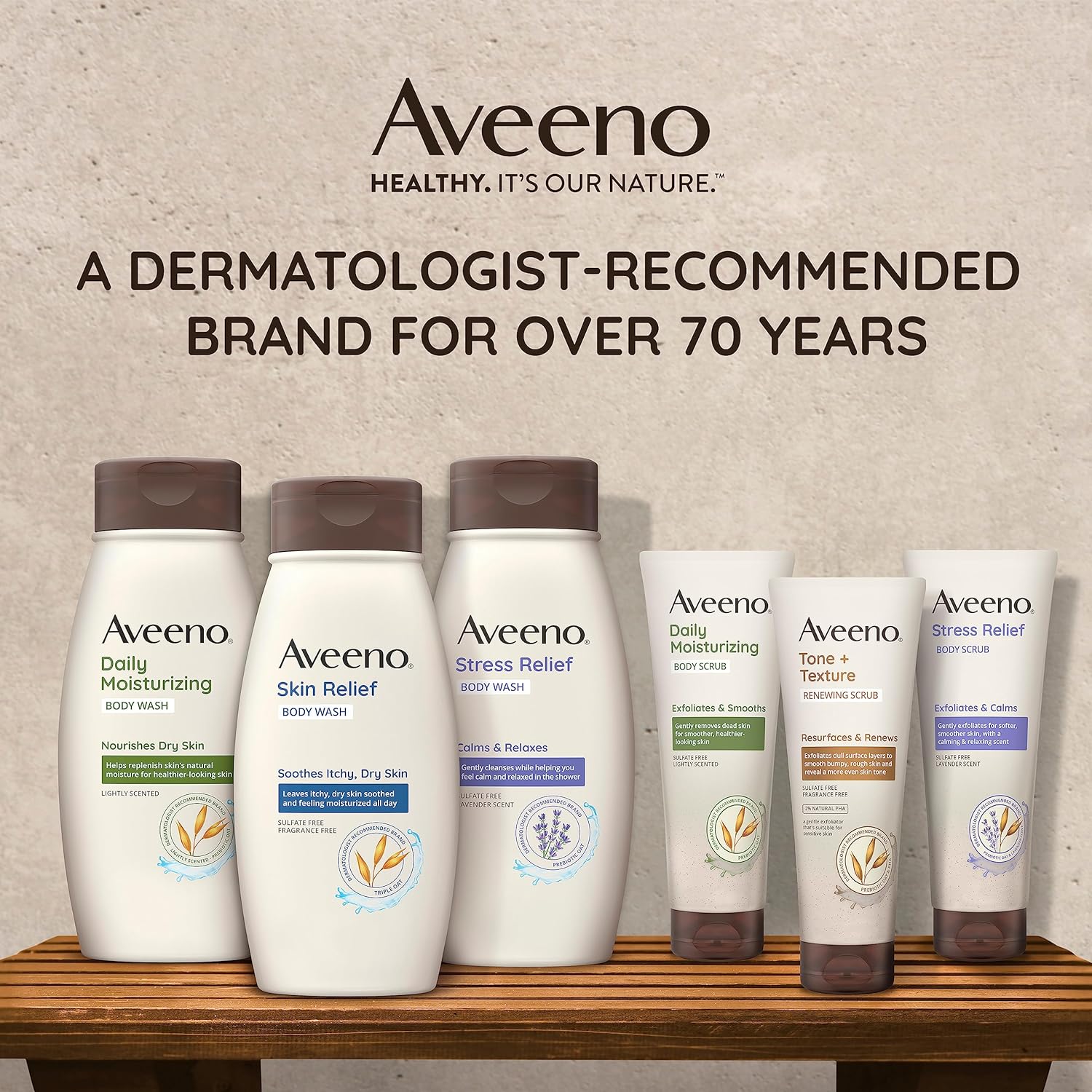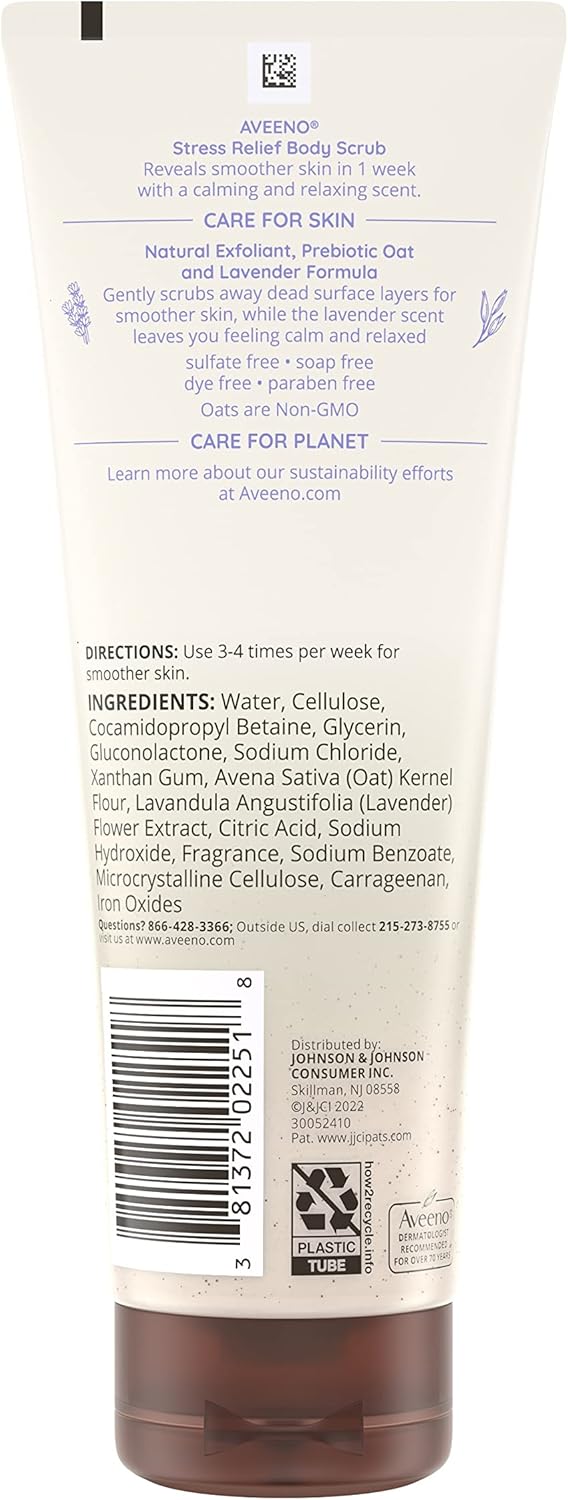 Aveeno Stress Relief Body Scrub, Exfoliating Body Wash for Softer, Smoother Skin, Formulated with Prebiotic Oat & Lavender Scent to Calm & Relax, Sulfate-Free & Soap-Free, 8 fl. Oz