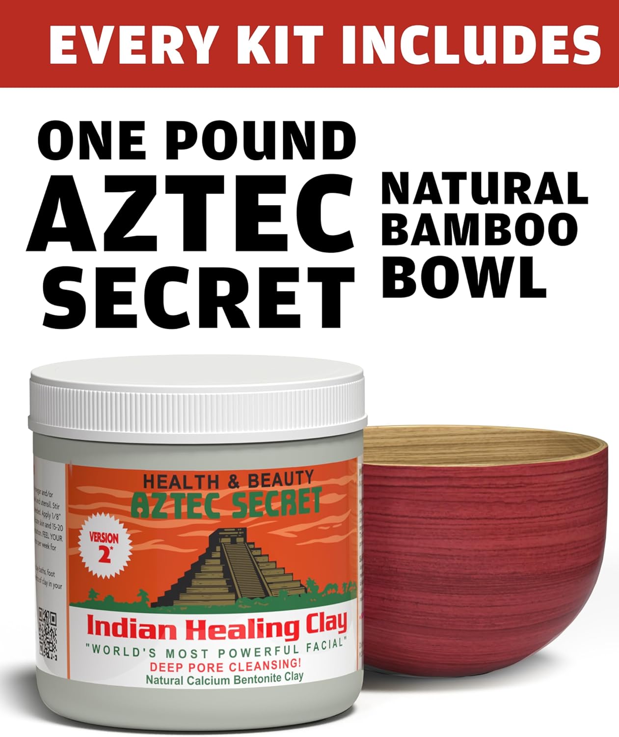 Aztec Secret Essential Indian Clay Mask Kit by Etana – 100% Natural Calcium Bentonite for Deep Pore Cleansing – Facial, Hair & Body Detox Set Wtih Accessories