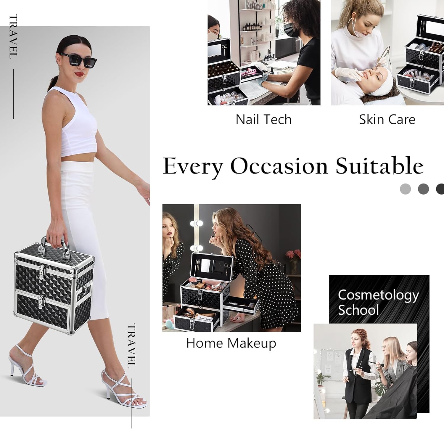 Introducing the Frenessa Nail Polish Makeup Train Case – the ultimate solution for organizing your manicure essentials and beauty products in style. This sleek and versatile makeup box features a spacious interior with a drawer and dividers, allowing you to neatly store and access your nail polishes, tools, and accessories with ease.