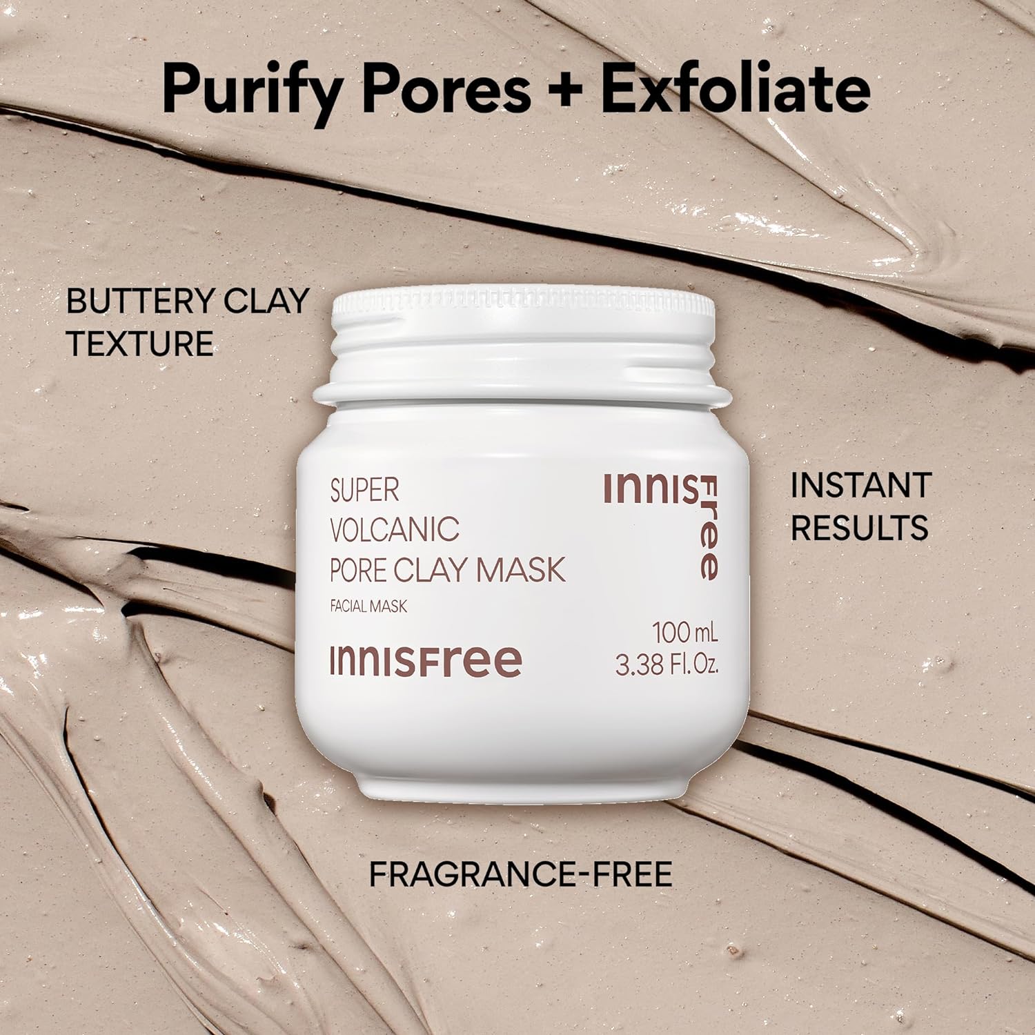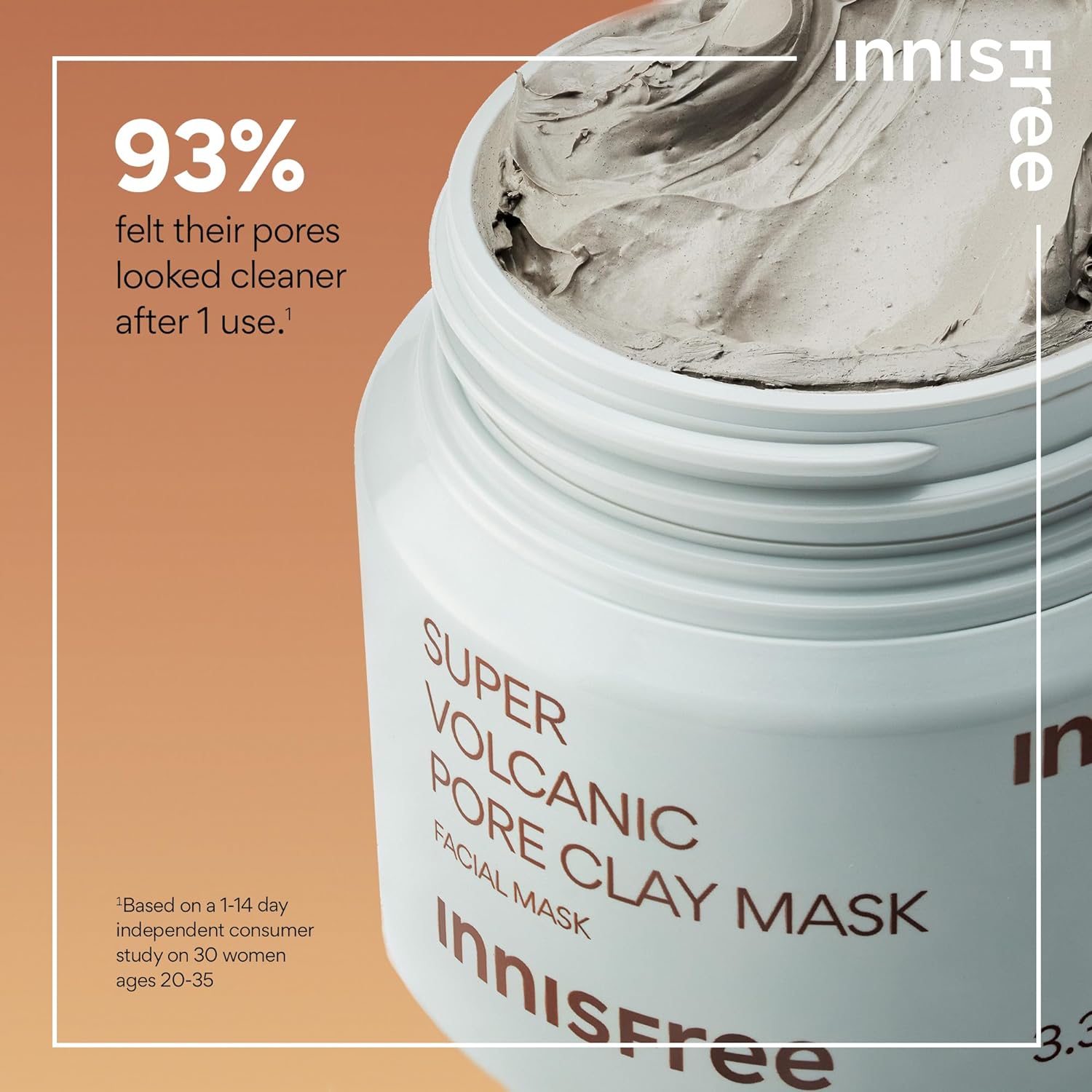 innisfree Super Volcanic Pore Clay Mask, Korean Pore Clearing Clay Mask with Volcanic Clusters and AHA