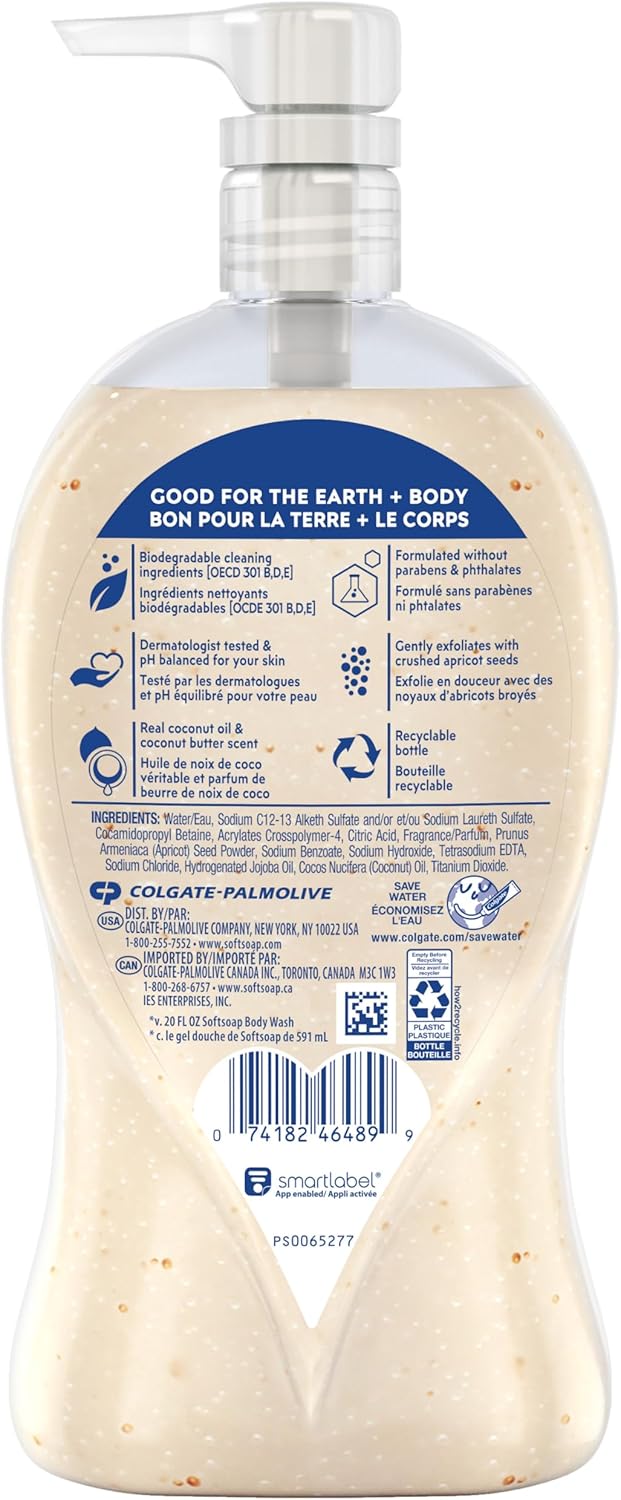 Softsoap Body Wash Pump, Coconut Butter Scrub, Exfoliating Body Wash, 32 Ounce (Pack of 1), WHITE (Package May Vary)